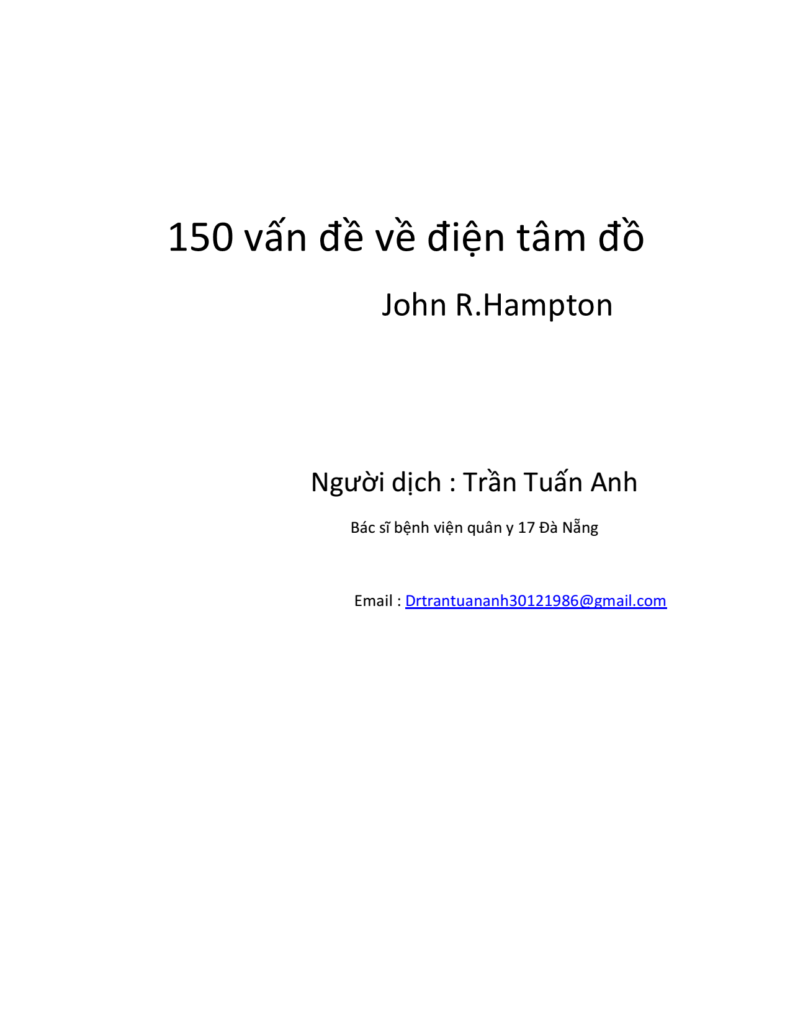 Hôm nay, Trang vừa sưu tầm được một tài liệu hay về cận lâm sàng và ECG nên muốn chia sẻ đến các bạn để chúng ta cùng nhau tham khảo nhé. Cuốn sách dịch 150 vấn đề ECG điện tâm đồ được dịch từ cuốn 150 ECG Problems của tác giả nổi tiếng Hampton. […]